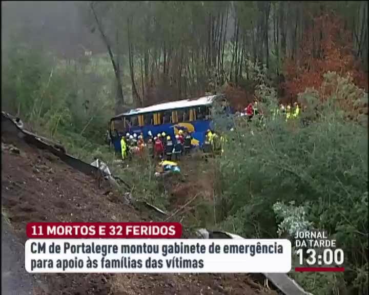Onze pessoas morreram num grave acidente com um autocarro de passageiros. Há ainda 32 feridos, 5 dos quais em estado muito grave. Seguiram para Coimbra e Castelo Branco. O veículo de matrícula espanhola tinha partido de Portalegre com destino a Santa Maria da Feira e circulava no IC8 quando caiu numa ravina na zona da Sertã.