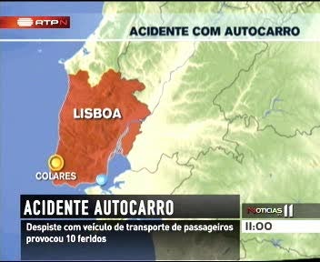 Um autocarro de passageiros despistou-se esta manhã na estrada que liga Sintra a Colares. Dez pessoas ficaram feridas e tiveram de ser transportadas para o hospital, seis delas com alguma gravidade.