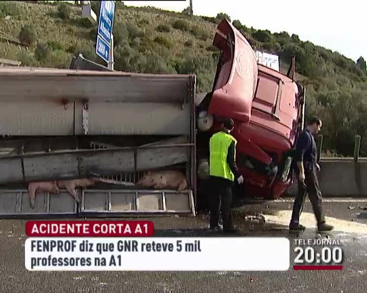 O despiste de um camião com dezenas de porcos provocou um verdadeiro caos na principal auto estrada do país. O acidente perto de Vialonga obrigou ao corte na circulação automóvel durante várias horas e deu origem a imagens invulgares. A FENPROF diz que vários autocarros com manifestantes ficaram bloqueados e vai pedir explicações o governo.
