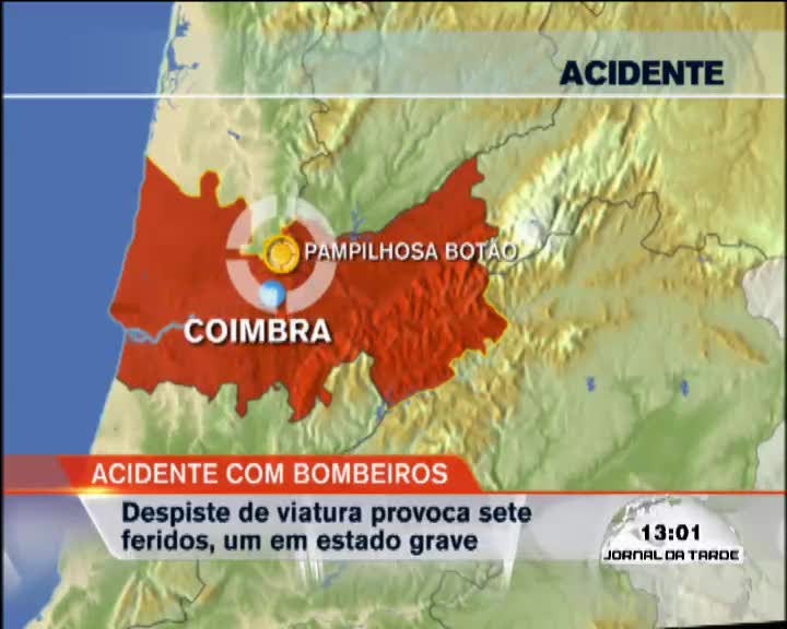 Um violento despiste de uma viatura de combate a incêndios dos Bombeiros Voluntários de Pampilhosa do Botão fez, esta manhã, sete feridos, um dos quais em estado considerado muito grave.