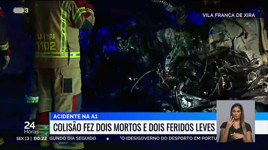A colisão na A1 junto a Vila Franca de Xira obrigou ao corte da auto-estrada quando eram cerca das 21h00. Além das duas vítimas mortais há pelo menos mais duas pessoas com ferimentos ligeiros.