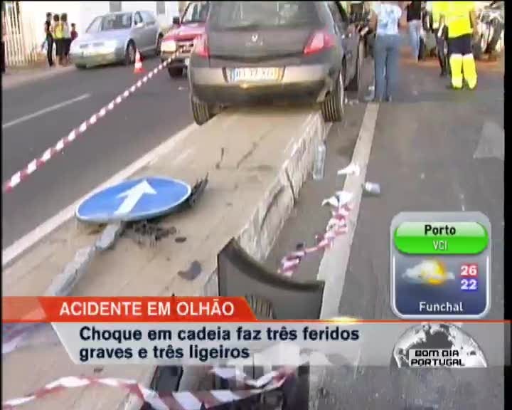 Um acidente na estrada entre Faro e Olhão provocou três feridos graves e três feridos ligeiros. Foi uma colisão em cadeia. Houve um condutor que não se apercebeu das viaturas paradas num semáforo.