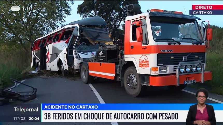O autocarro acidentado no Cartaxo ainda está a ser retirado da via para que a Estrada Nacional 3, que liga a Azambuja ao Cartaxo, possa reabrir ao trânsito.