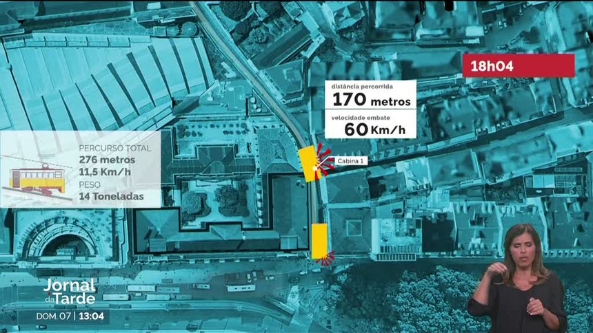 O elevador faz um percurso de 276 metros em pouco mais de um minuto, a uma velocidade máxima de 11,5 quilómetros por hora. Na quarta-feira, as duas carruagens iniciaram viagem às seis horas e três minutos da tarde e tinham percorrido seis metros quando falhou a ligação do cabo às composições.