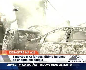Dois acidentes junto ao nó de Talhadas, na A25, em Sever do Vouga, fizeram seis mortos, incluindo duas crianças. A Autoridade Nacional de Protecção Civil (ANPC) apontava, às 19h32, para 72 pessoas feridas, 48 das quais em estado grave. Originaram choques em cadeia, envolvendo cerca de 50 viaturas. Doze veículos incendiaram-se, dois são pesados. A GNR e o CDOS apontam "condições atmosféricas adversas".