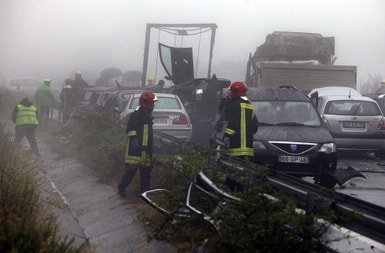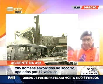 As operações de socorro estão a ser dificultadas pela chuva e pelo nevoeiro que faz junto ao nó de Talhadas, tornando as manobras mais lentas.
