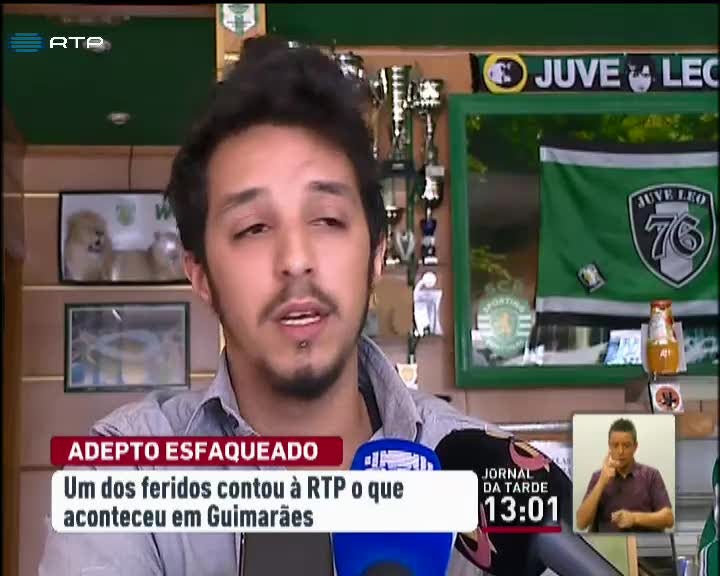 Dois adeptos do Sporting foram ontem esfaqueados logo após o jogo que os leões perderam em Guimarães. Um dos adeptos foi ferido com gravidade e está internado. O outro já teve alta e contou à RTP como tudo aconteceu.