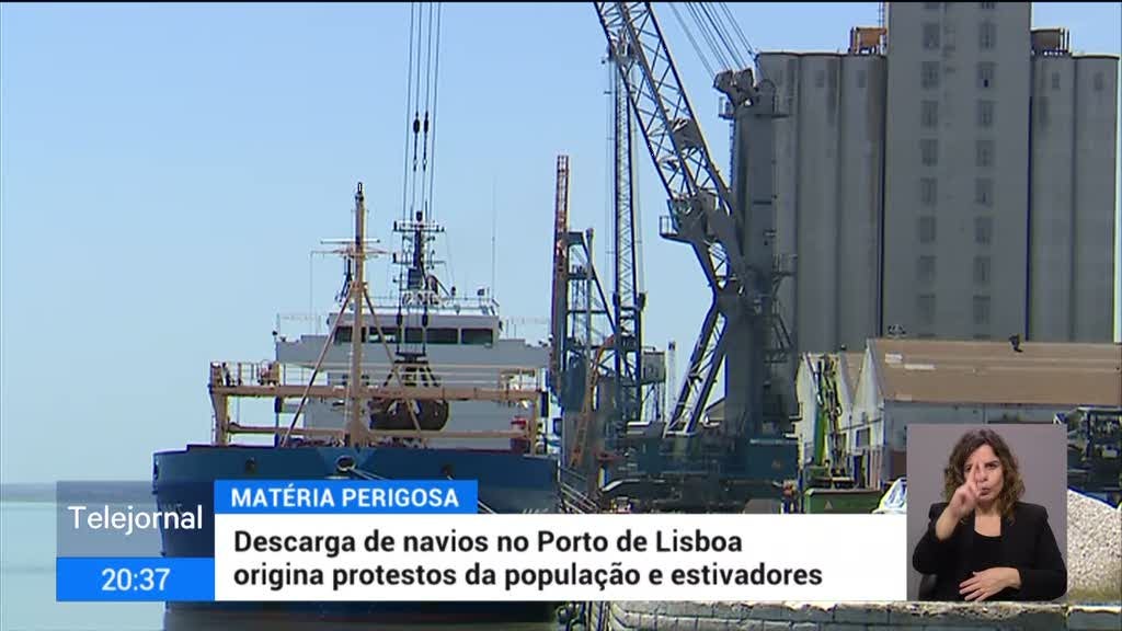 A descarga de matéria perigosa no Poço do Bispo, em Lisboa, originou o protesto do sindicato dos estivadores e da população. O Ministério do Ambiente e Ação Climática garante que o risco é reduzido.