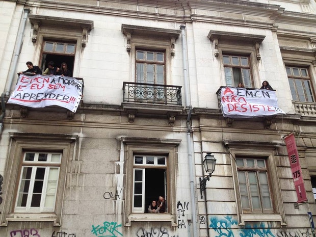 “Escola de Música a morrer e eu sem aprender”, “Quero estudar”, “Nós somos Conservatório Nacional, basta!”. São palavras de ordem dos alunos da Escola de Música do Conservatório Nacional de Lisboa, que continuam concentrados à porta da instituição, exigindo obras urgentes no edifício que está em avançado estado de degradação.