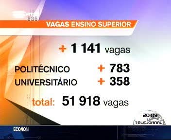 Segundo informação do Ministério da Ciência, Tecnologia e Ensino Superior este ano há mais 1100 vagas do que no ano anterior, num total de 51918 lugares, o que significa que entre 2004 e 2009 o número de vagas abertas anualmente para ingresso em instituições de ensino superior universitário e politécnico cresceu de 46 673 para 51918 lugares.