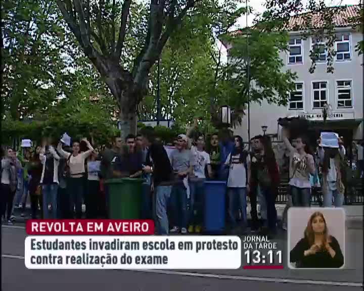 Em Aveiro houve uma ação de protesto dos alunos que não conseguiram fazer o exame nacional de Português do Ensino Secundário. Invadiram a escola. Só 17 de um universo de 300 estudantes fizeram o exame.