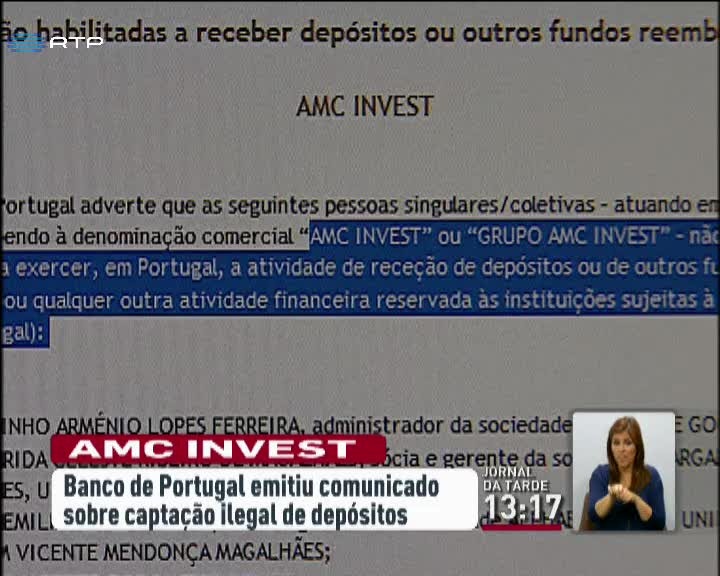 A Polícia Judiciária deteve três pessoas suspeitas de envolvimento num esquema de captação ilegal de depósitos. Centenas de pessoas terão sido burladas pela AMC Invest, que ofereceria juros mensais de 10%. O caso tem, pelo menos, oito arguidos, dois ficaram em prisão preventiva. O principal suspeito é o empresário de Felgueiras, Arménio Ferreira.