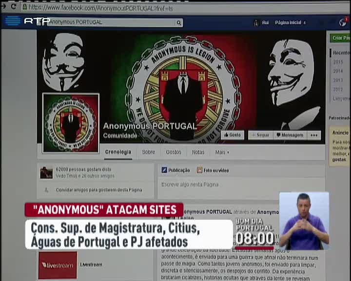 Dados pessoais de mais de 1.300 magistrados e juristas foram expostos na internet pelo grupo Anonymous Portugal. Numa operação designada "25 de Abril - apagão nacional", o grupo atacou vários sites de instituições públicas. O acesso à página oficial da Polícia Judiciária foi bloqueado e os portais do Citius e do Conselho Superior de Magistratura foram também afetados. A página da empresa Águas de Portugal foi invadida e substituída durante alguns minutos pela imagem de um cravo vermelho. Dados reservados relativos ao Millenium BCP e à EDP foram igualmente divulgados. Invocando Salgueiro Maia, os piratas informáticos reivindicaram nas redes sociais os ataques, usando a expressão "É preciso desobedecer". No facebook o grupo adulterou ainda o símbolo do partido socialista.