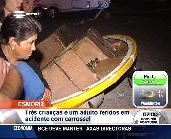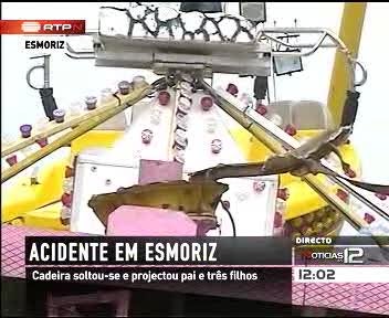 A 24 de Maio, nas festas do Senhor de Matosinhos, um acidente semelhante fizera oito feridos. Uma cadeira de um carrossel desprendeu-se, então, a mais de 100 quilómetros por hora. Algo que se terá repetido em Esmoriz, segundo o comandante dos Bombeiros Voluntários da localidade.