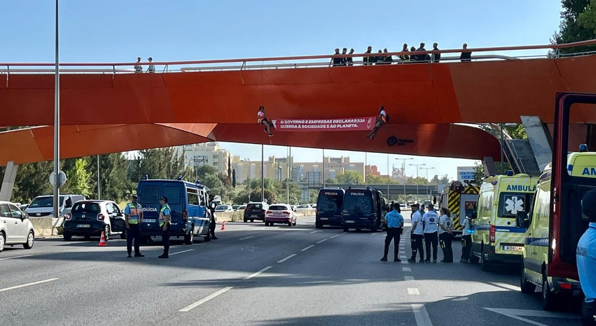 A Segunda Circular, em Lisboa, foi esta terça-feira palco de um protesto de ativistas climáticos. Primeiro cortaram a via e foram removidos à força pelos próprios condutores. Em seguida, dois ativistas penduraram-se por cordas num acesso pedonal.