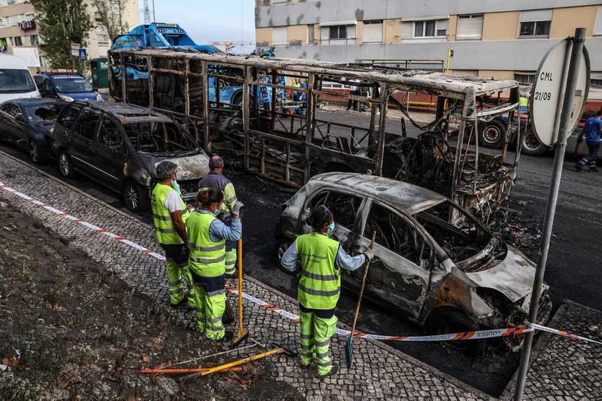 Autocarro incendiado. PJ identificou vários suspeitos em Loures