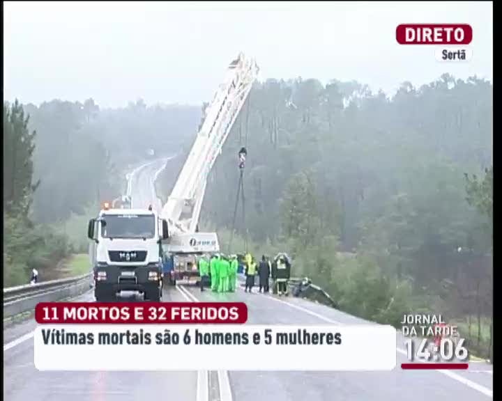 Uma grua que levanta 100 toneladas chegou ao local do acidente para que o autocarro seja retirado da ravina.