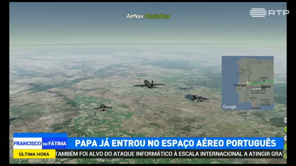 Avião do Papa em território nacional escoltado por caças da Força Aérea portuguesa