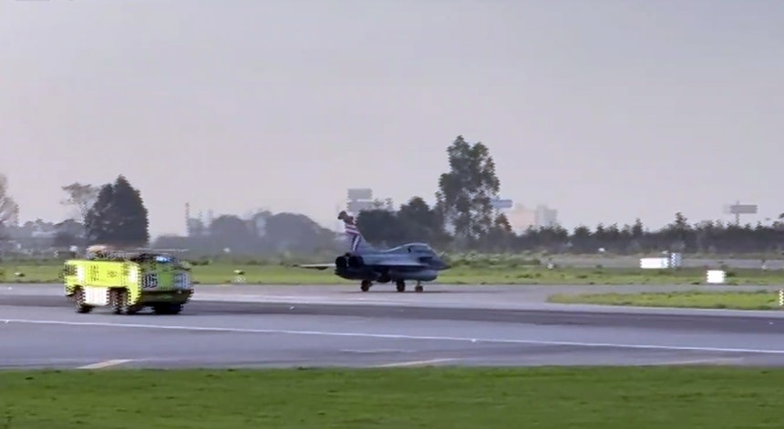 O caça Eurofighter francês, com quatro horas de combustível e dois ocupantes, aterrou em segurança pouco depois das 10 da manhã.