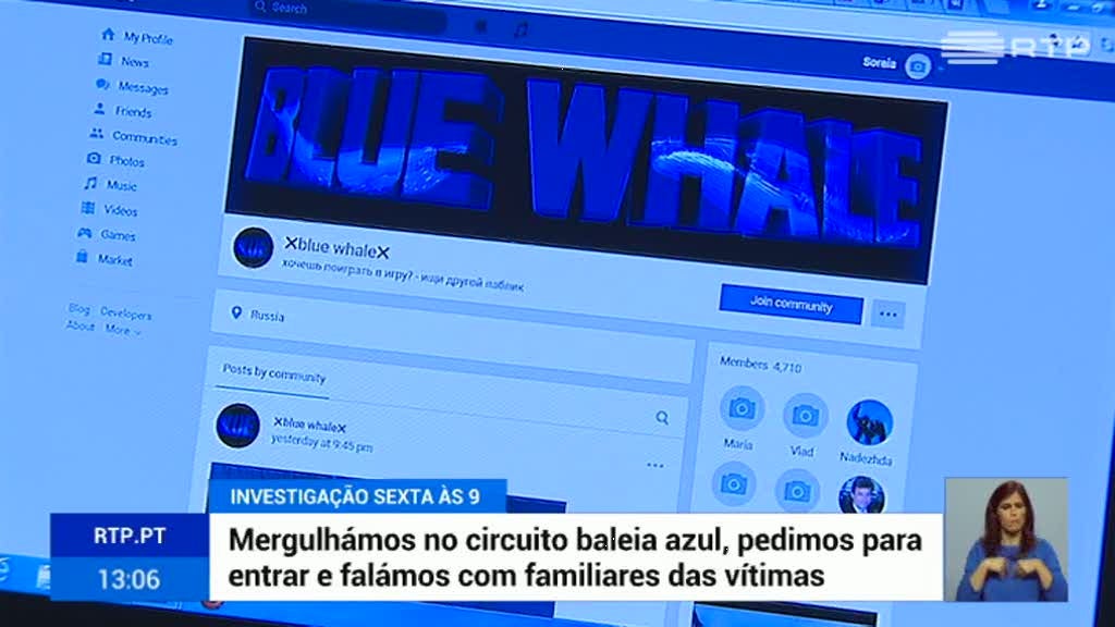 O jogo online, fenómeno a nível mundial, leva os jovens a práticas de medo, automutilação, ou até mesmo comportamentos suicidas. Decorre através de desafios constantes, numa lógica de ameaças pessoais, à família e amigos.