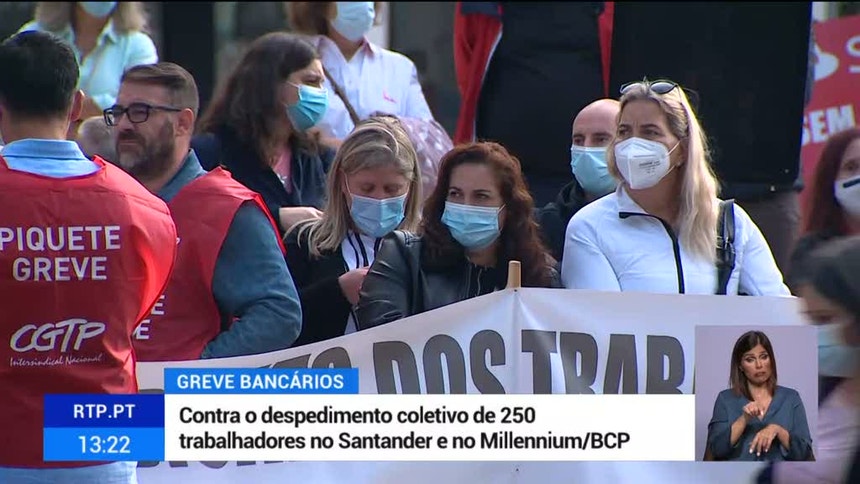Bancários em greve contra despedimento coletivo no Santander e Millennium BCP