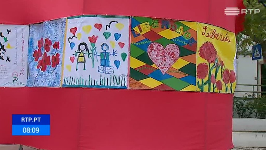 Em Castro Marim, o 25 de Abril é assinalado com uma bandeira de 40 metros com desenhos dos 500 alunos do primeiro ciclo.