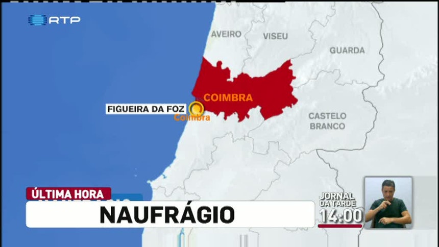 Um barco de pesca naufragou a 13,5 milhas a sul da Figueira da Foz, entre Pedrógão Grande e Vieira do Minho.