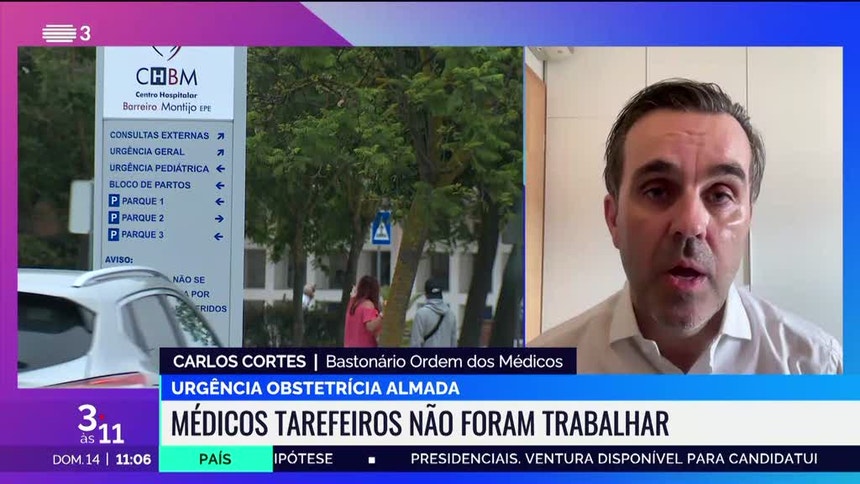 Ao contrário do previsto, não há urgências de obstetrícia e ginecologia na Península de Setúbal. O serviço do hospital Garcia de Orta, em Almada, ficou este fim-de-semana sem médicos tarefeiros. O bastonário da Ordem dos Médicos diz que a direção executiva do SNS falhou na resolução dos problemas na Península de Setúbal.