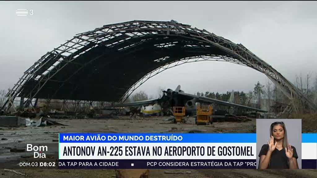 Os bombardeamentos russos destruíram o maior avião do mundo. A notícia já tinha sido avançada, mas agora chegam as imagens da destruição. O Antonov 225 estava estacionado no Aeroporto de Gostomel, perto de Kiev, local atacado e ocupado pelas tropas russas, mas recuperado pelas forças ucranianas.