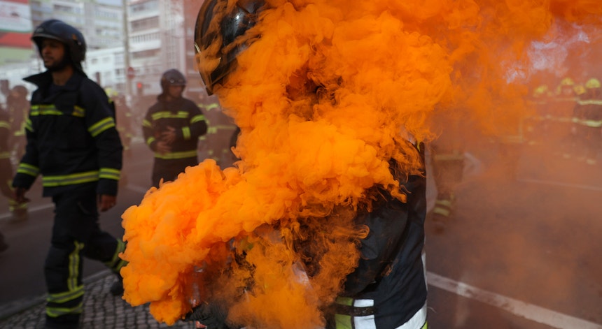 Bombeiros protestam com tochas e petardos junto à sede do Governo