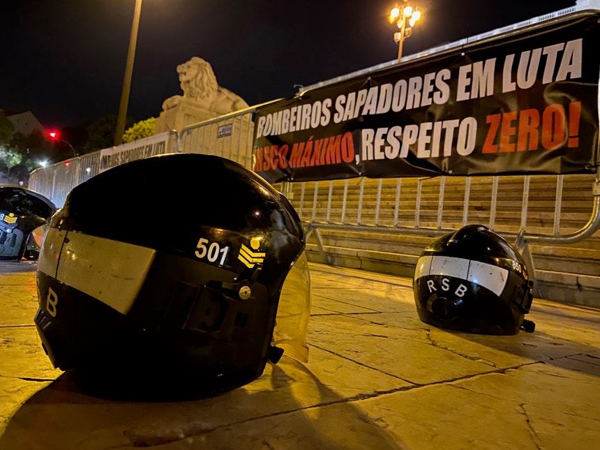 Dezenas de bombeiros sapadores concentraram-se ontem à noite em frente à Assembleia da República. Exigem a revisão da carreira, e pedem medidas concretas ao Governo.