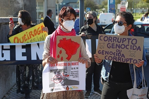 "O ministro é um dos responsáveis pelas mais de 600 mil mortes, opôs-se e ainda se opõe hoje ao uso de máscara, que é o princípio básico da proteção [contra a covid-19]", acrescentou a dirigente brasileira, salientando que "o `ministro da morte` é indiciado por crime de negligência, no mínimo".