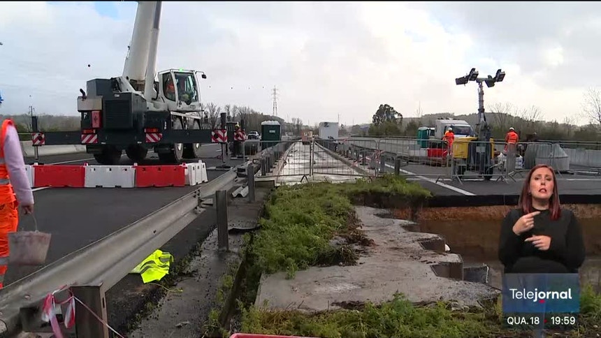 Os trabalhos de colocação de rochas e de estabilização da laje de transição da plataforma Sul-Norte estão concluídos. Segue-se agora a fase de reparação do aterro e a pavimentação.A Brisa avança que não há qualquer problema na estrutura do viaduto e defende a reabertura do trânsito no sentido Sul-Norte de forma condicionada. A proposta está em análise pelas autoridades competentes.
