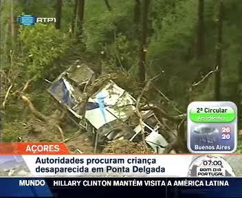 As autoridades açorianas recomeçaram esta manhã as buscas para encontrar a criança desaparecida no dia de ontem na sequência do acidente com um autocarro que foi arrastado por uma enxurrada e que provocou a morte do motorista e ainda ferimentos em outras duas crianças. Ao início da tarde as buscas foram alargada ao leito da Ribeira das Mulheres.