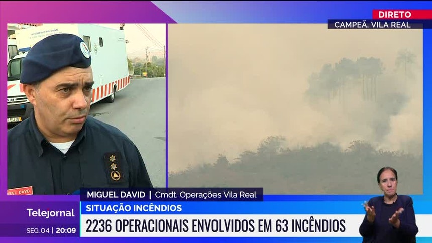 Na zona da Campeã, em Vila Real, a noite pode ser de dificuldades. O Comandante Miguel David falou com a RTP e explicou que a orografia está a dificultar a luta contra as chamas, tal como as várias mudanças de direção do vento.