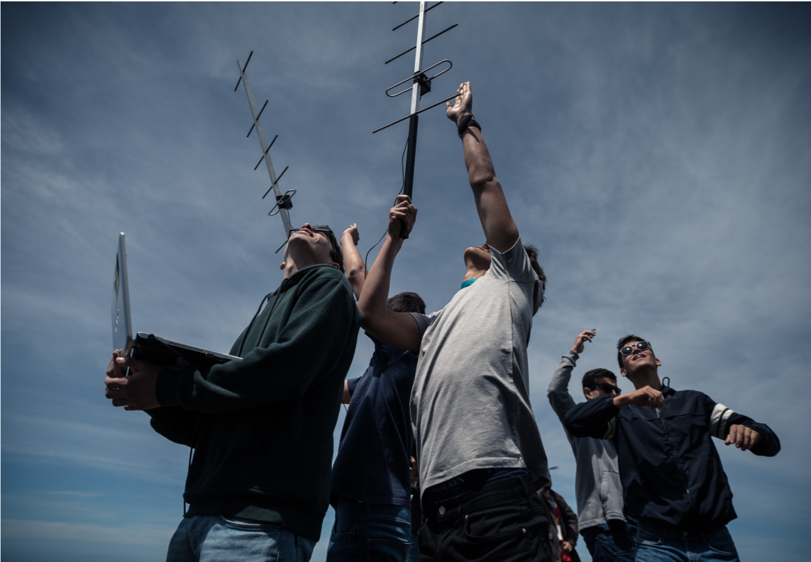 Equipa em terra com as antenas, durante a final de 2019. Crédito: Pepe Brix.