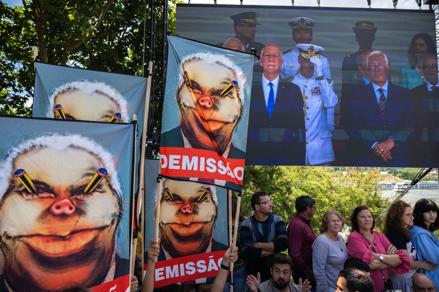 Nenhum sindicato assume os cartazes de protesto no 10 de Junho. António Costa entrou em confronto verbal com professores que se manifestavam nas celebrações do Dia de Portugal e descreveu um dos cartazes como racista.
