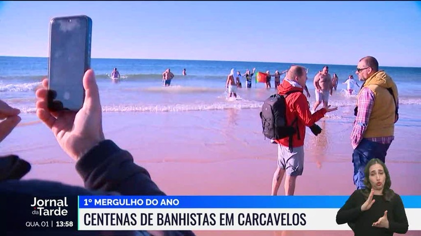 País Centenas de banhistas deram o primeiro mergulho do ano na praia de Carcavelos Para muitos é tradição e até dizem que a água está boa. RTP / VER MAIS PUB