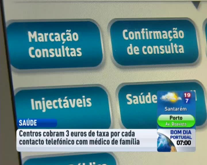 Alguns centros de saúde já estão a cobrar três euros de taxa moderadora por um telefonema para o medico de família. Está também a ser cobrada por contactos através da internet. A portaria que regulamenta as novas taxas moderadoras da saúde contempla este tipo de situações uma vez que as define como consultas sem presença do doente. No entanto, há centros de saúde com dúvidas na aplicação desta taxa.