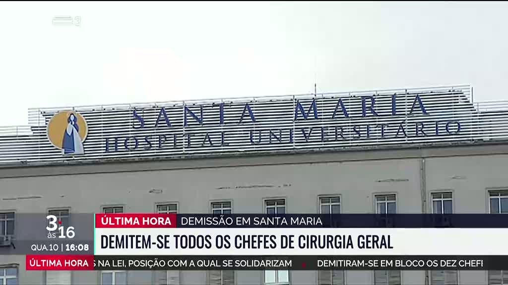 Demitiram-se esta quarta-feira em bloco os chefes de equipa de cirurgia geral do Hospital de Santa Maria, em Lisboa. Entretanto, chegou às redações uma resposta do Conselho de Administração do CHULN - Centro Hospitalar Universitário Lisboa Norte.