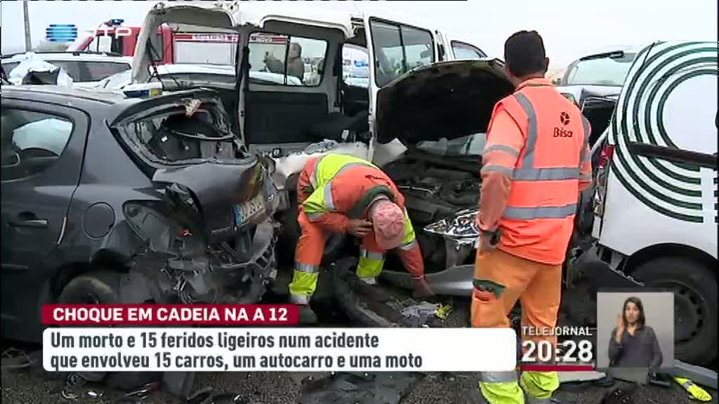 Choque em cadeia na A12 provocou um morto e 15 feridos ligeiros