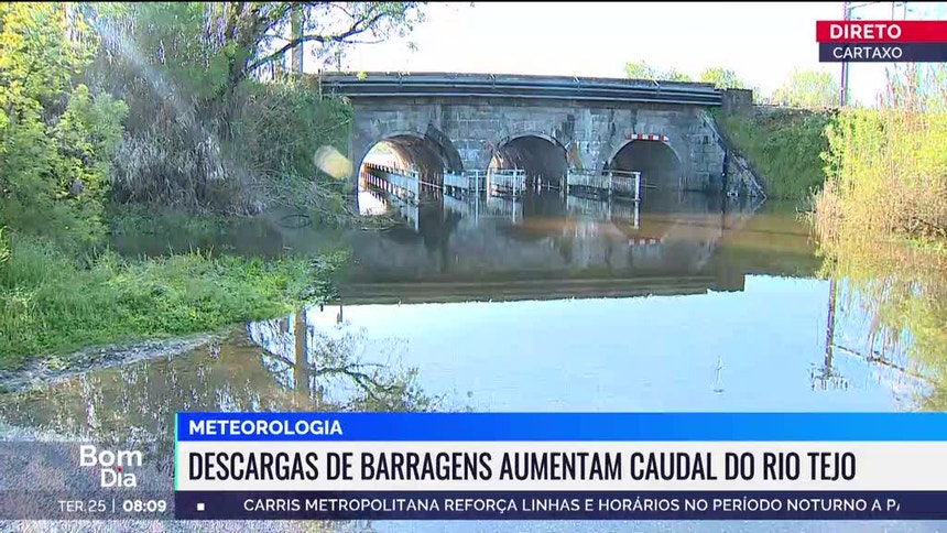 Esta terça-feira de manhã, em Setil, a reportagem da RTP esteve numa estrada, a cerca de um quilómetro do rio, onde as águas do Tejo permanecem. Estão desanconselhadas deslocações a pé ou de carro perto do rio até porque os caudais do Tejo estão a subir.