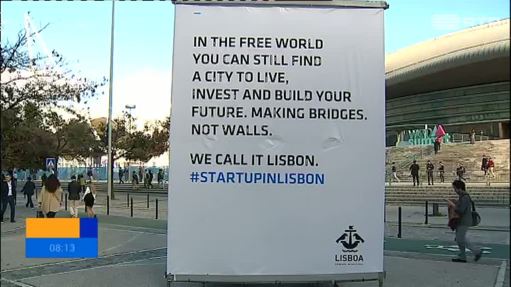 Foram colocados no exterior da FIL, onde se realizou a Web Summit, vários cartazes com um convite aos empresários para fixarem os negócios na capital portuguesa.