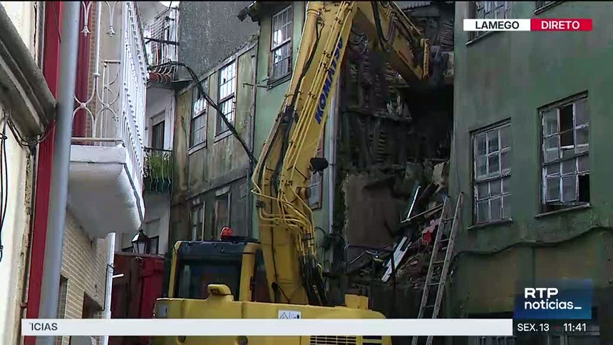 No centro da cidade de Lamego vários edifícios antigos estão em perigo de ruir e os trabalhos de remoção já estão a decorrer.