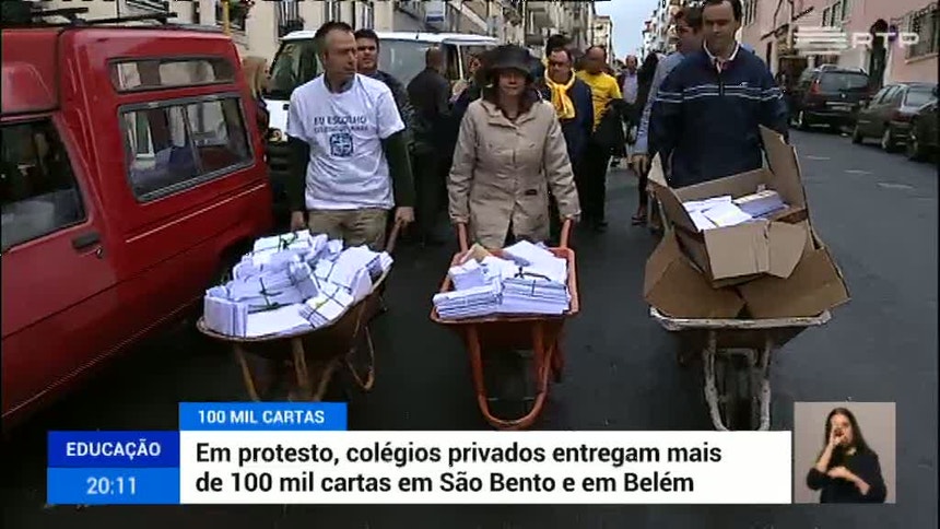 Representantes de vários colégios privados entregaram esta segunda-feira mais de 100 mil cartas em São Bento e em Belém. Em mais uma forma de protesto, pretendem mostrar indignação ao primeiro-ministro e ao Presidente da República