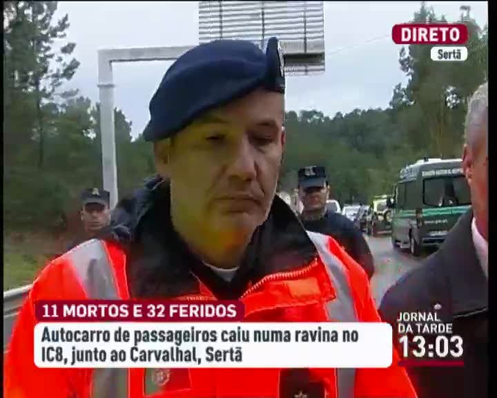 O despiste de autocarro, na Sertã, provocou onze mortos, dez no local do acidente e uma já no hospital, e ainda seis feridos muito graves, segundo a Proteção Civil, que indica ainda que todos os feridos foram encaminhados para os Centros Hospitalares de Coimbra, Castelo Branco e para o Hospital Pediátrico de Coimbra.