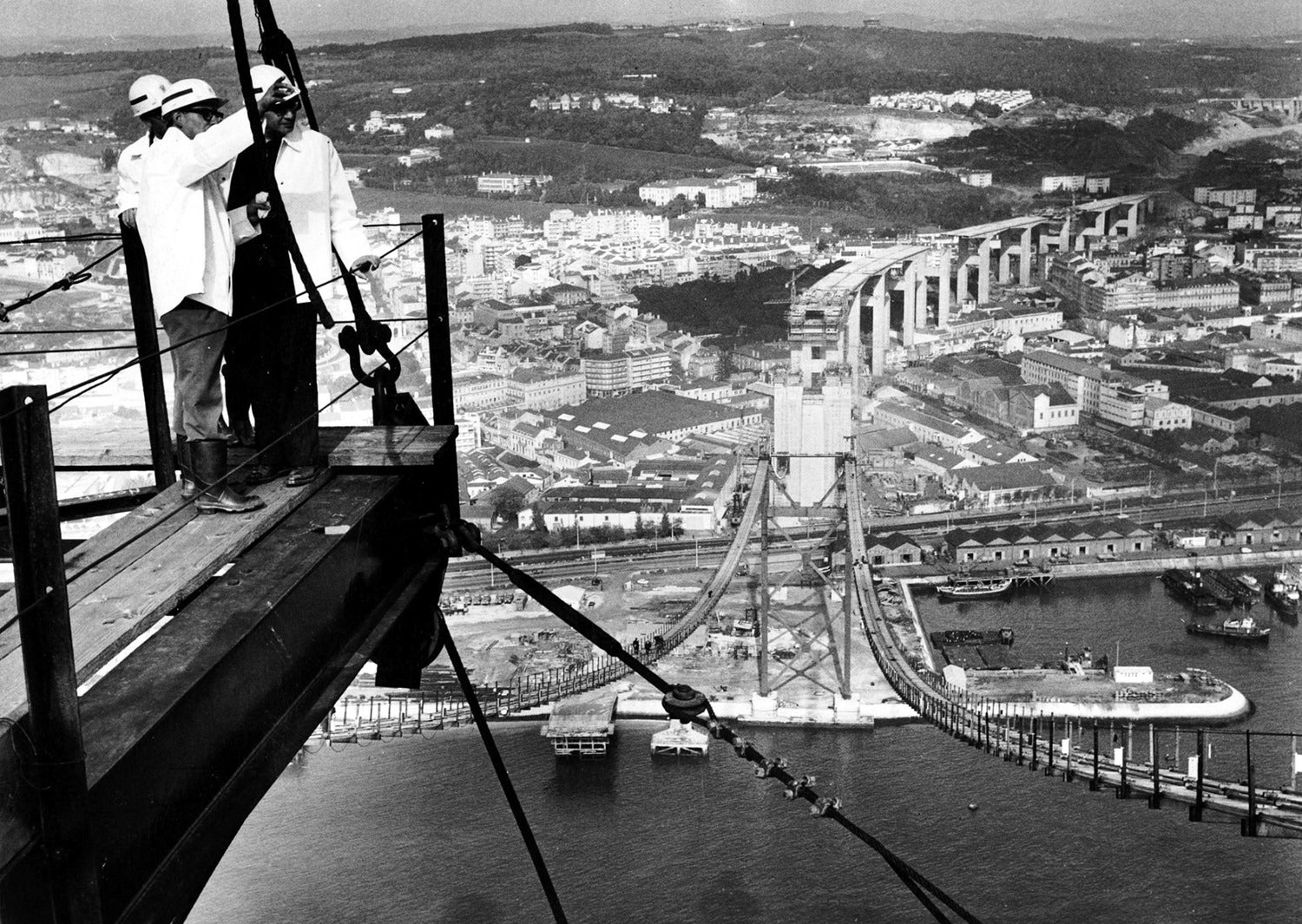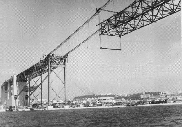 Às 10h39 do dia 10 de janeiro de 1963 é lançado às águas do Tejo o primeiro "caixão" de um conjunto, que serviu para montar a ancoragem Sul, no leito do rio, que iria receber um dos pilares da ponte.