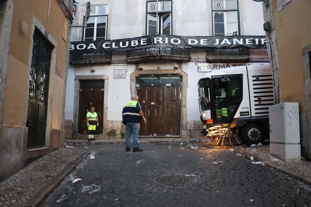 Habitualmente são as equipas da junta de freguesia que colhem esta “fortuna” no interior dos bairros, mas, às seis da manhã de sábado, uma equipa da câmara municipal guia o microfone da Antena 1 por um dos principais pontos negros da noite de Lisboa.