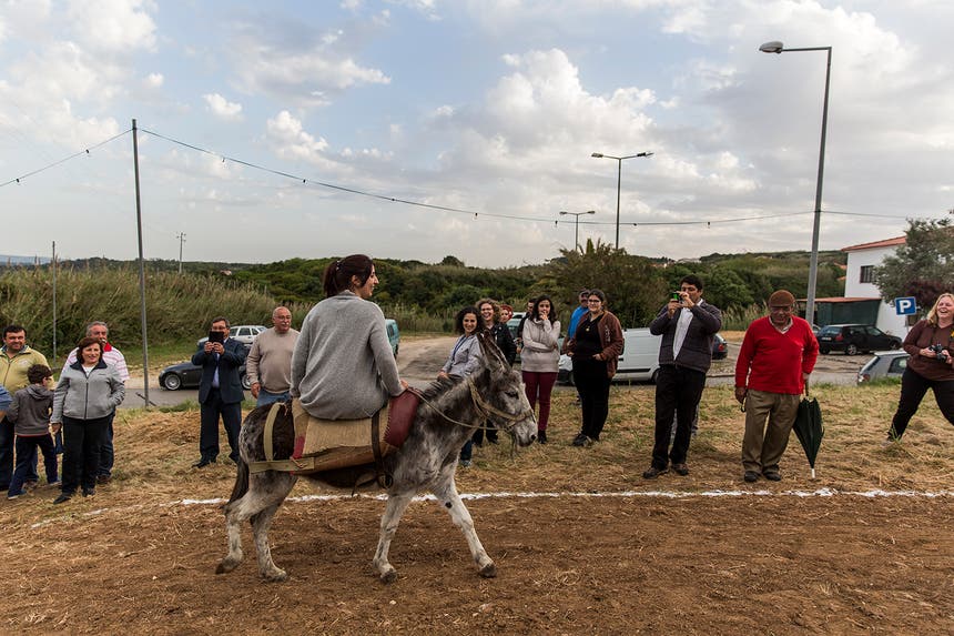Haverá dez burros à disposição dos mais atrevidos, que vão competir num “burródromo”, uma pista de terra batida, oval, com alguma inclinação e cerca de 100 metros.