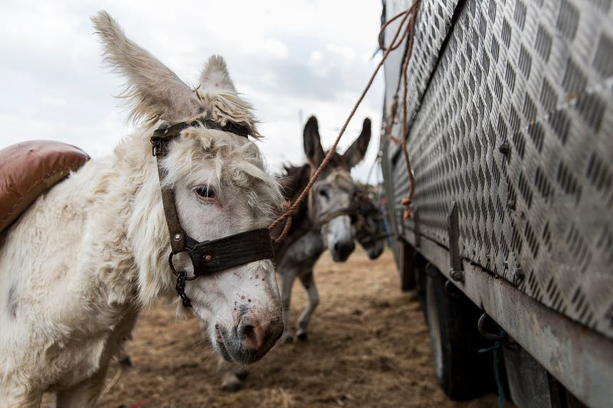 Belarmino Figueiredo, proprietário dos burros, explora uma pequena quinta perto de Alcobaça, onde tem cerca de 30 destes animais em vias de extinção. "Antigamente, quem tinha burros usava-os para trabalho, hoje em dia é para lazer", explica.